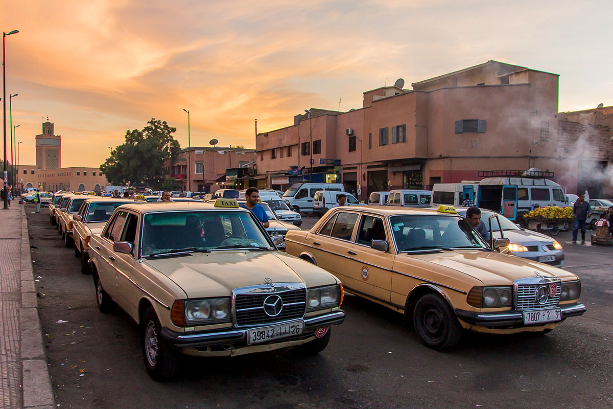 Como a maioria dos hotéis e hostels (riads) são acessíveis apenas a pé, levar turistas até o aeroporto são uma das poucas opções que o taxistas tem em Marrakech.