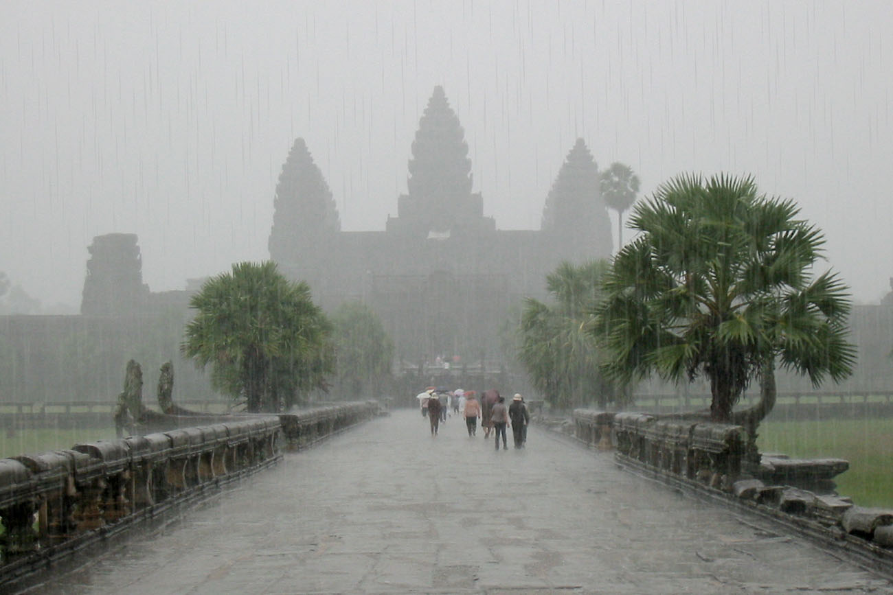 Assim como os demais países do sudeste asiático, o clima no Camboja também sofre com a época das Monções, quando a chuva castiga a região por alguns meses. Visitar os Templos de Angkor em um dia chuvoso pode ser bastante frustrante, pois a combinação de cores das ruínas com a vegetação nativa, que gera um contraste lindo em dias ensolarados, é apagada pelo céu cinza.